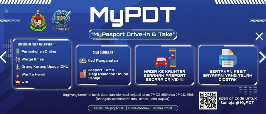 Semua urusan pembaharuan Pasport Malaysia Antarabangsa (PMA) perlu dibuat secara atas talian (online) sahaja. (kecuali bagi permohonan PMA baru bagi warga emas, OKU, kanak-kanak 13 tahun ke bawah, Jemaah Haji, pelajar dan PMA yang rosak/hilang)